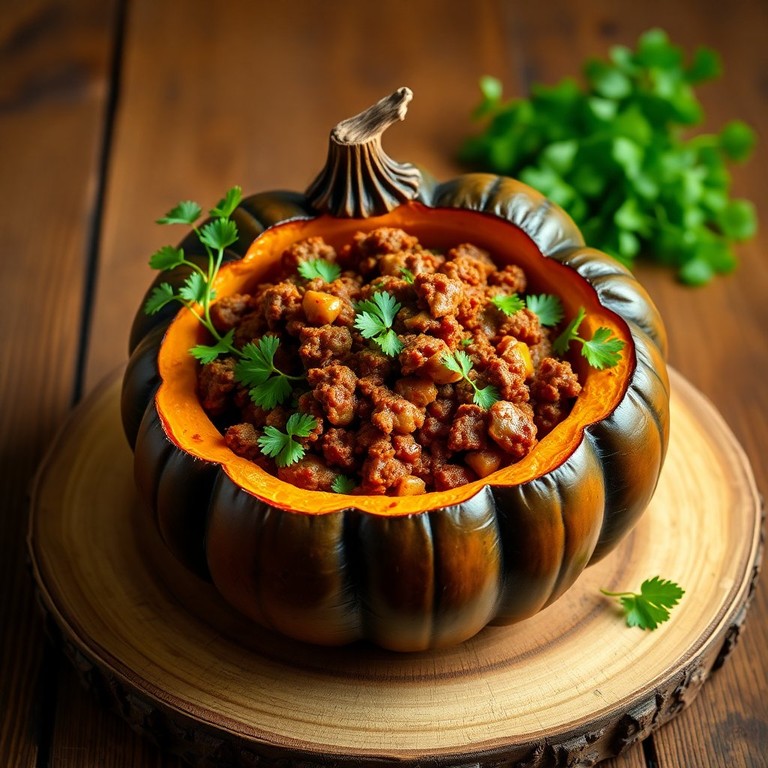 Un plat réconfortant de potiron rempli de viande savoureuse et d'épices, parfait pour les repas en famille ou entre amis.