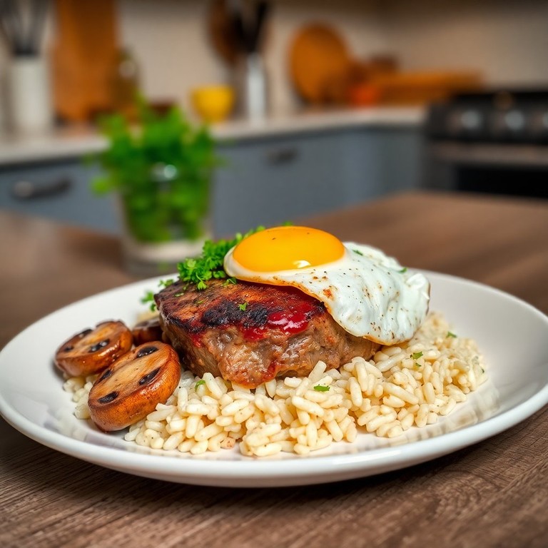Un plat réconfortant et savoureux qui combine le goût riche du steak haché, la douceur des oignons, la texture des champignons rôtis et la richesse des oeufs. Parfait pour un dîner en famille ou entre amis.