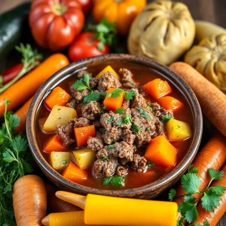 Un reconfortante guiso lleno de sabor y nutrientes, ideal para disfrutar en familia. Este guiso combina la carne molida con verduras frescas como zucchini y zanahorias, creando un plato nutritivo y delicioso.