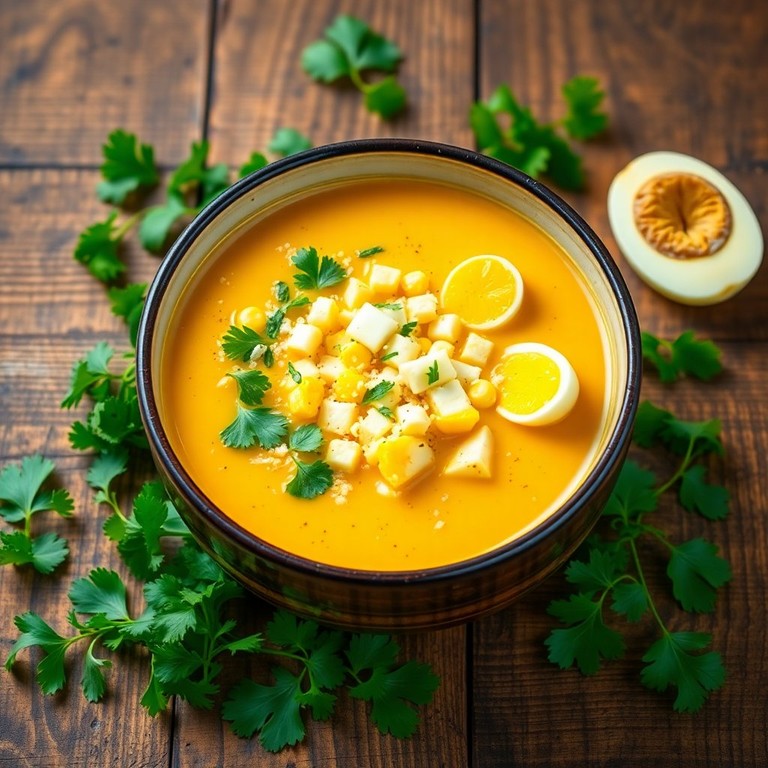 Sopa de Maíz con Decoración de Huevo y Maíz Desgranado