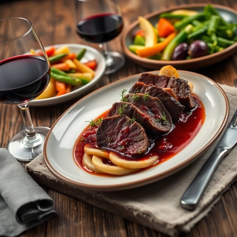 Une délicieuse langue de bœuf mijotée dans un vin rouge riche et aromatique, parfaite pour un repas réconfortant.