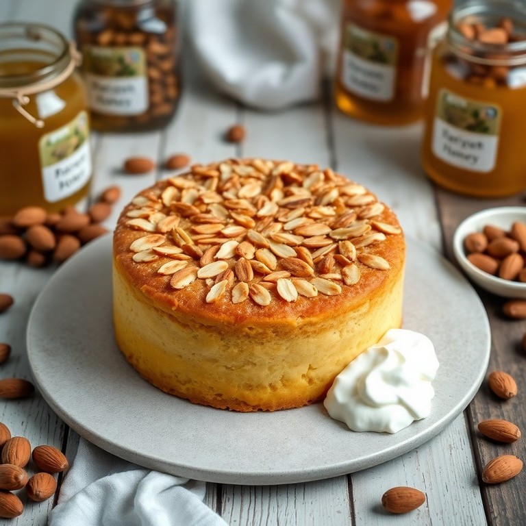Bienenstich-Kuchen mit Honig und Mandeln ohne Zucker