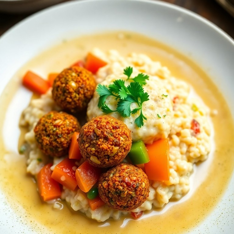 Dieses Rezept kombiniert die cremige Textur von Risotto mit knusprigen Falafeln und einer bunten Gemüsebeilage. Es ist ein herzhaftes und sättigendes Gericht, das sowohl Vegetarier als auch Fleischliebhaber begeistert.