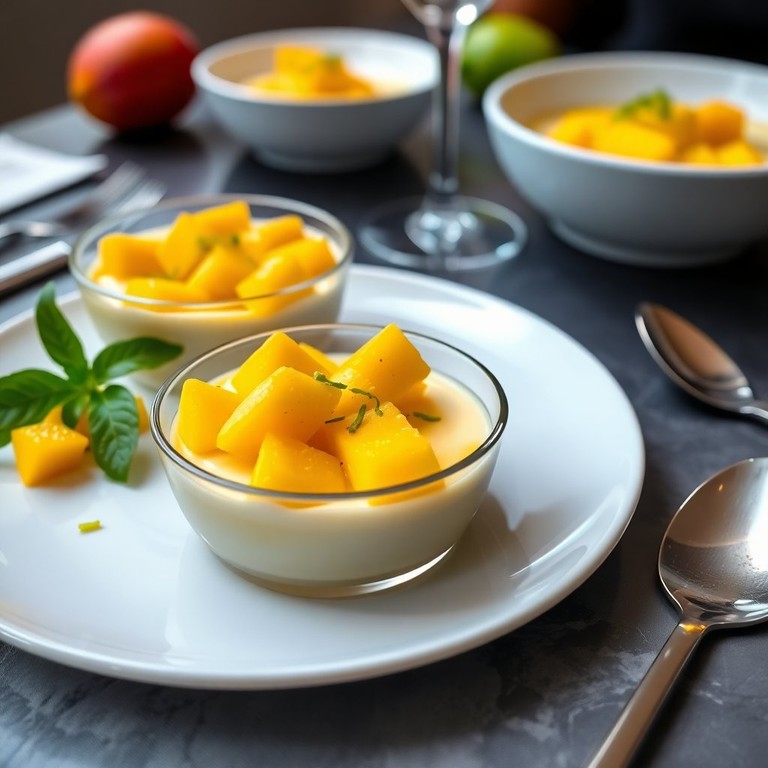 Une version sans gélatine de la Panna Cotta au Coco et Mangue, utilisant de l'agar-agar comme gélifiant. Ce dessert léger et exotique conserve toute la douceur crémeuse du lait de coco et la fraîcheur acidulée de la mangue, pour un voyage tropical en bouche.