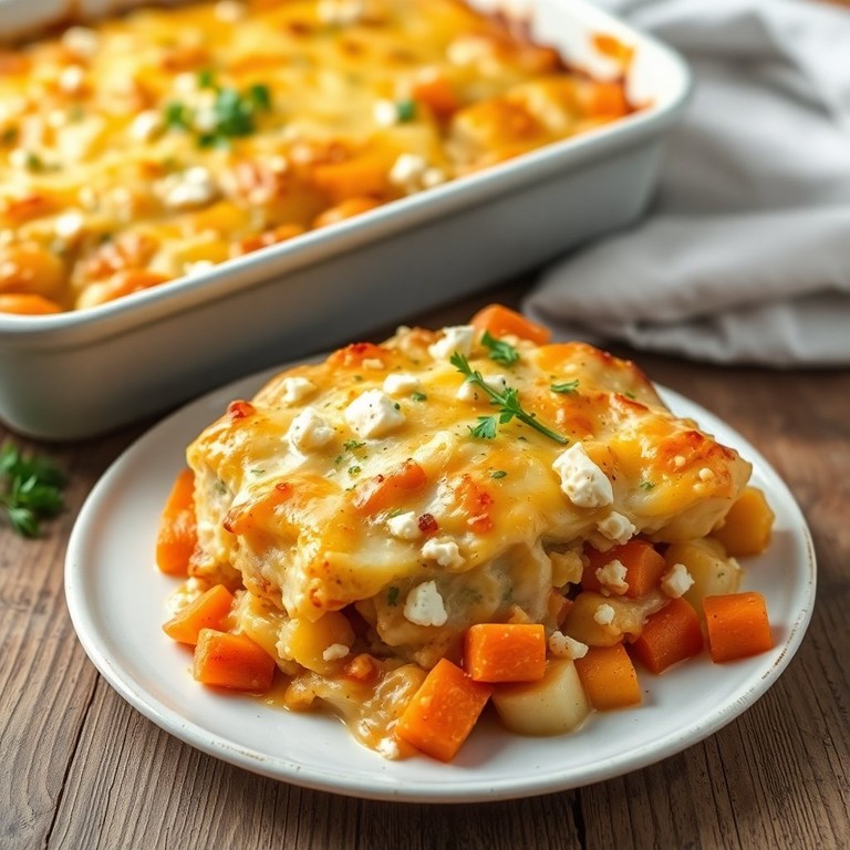 Un gratin crémeux et savoureux, alliant pommes de terre, feta et carottes, parfait pour un repas réconfortant.
