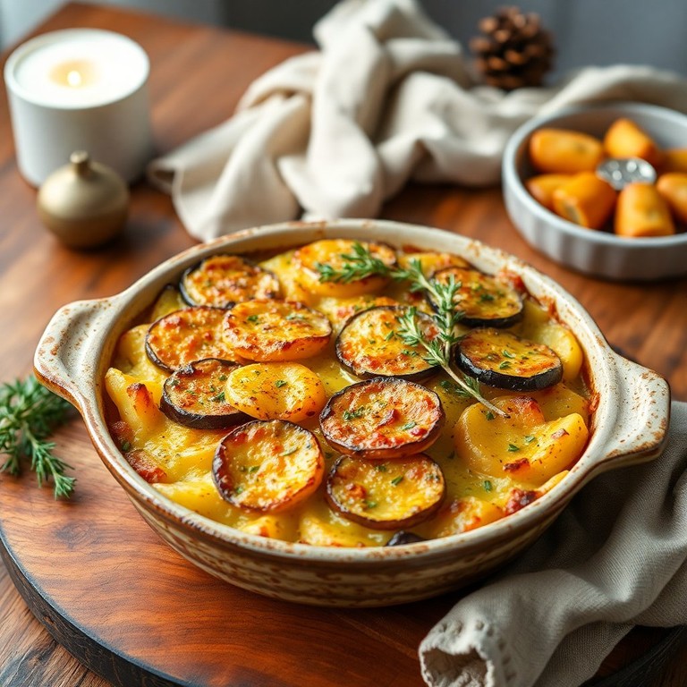 Un plat réconfortant aux saveurs méditerranéennes, parfait pour les soirées d'hiver, combinant des aubergines, des pommes de terre et des carottes dans une délicieuse crème et fromage.