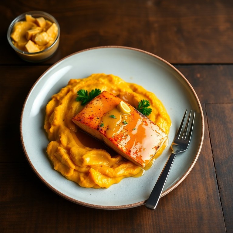 Este plato combina la jugosidad del salmón con un glaseado dulce y picante de miel y mostaza, creando un contraste perfecto con el suave puré de camote. Es una opción deliciosa y saludable para cualquier ocasión.