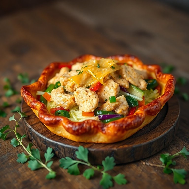 Une délicieuse tarte croustillante garnie de poulet tendre et de chou chinois, parfaite pour un dîner convivial.