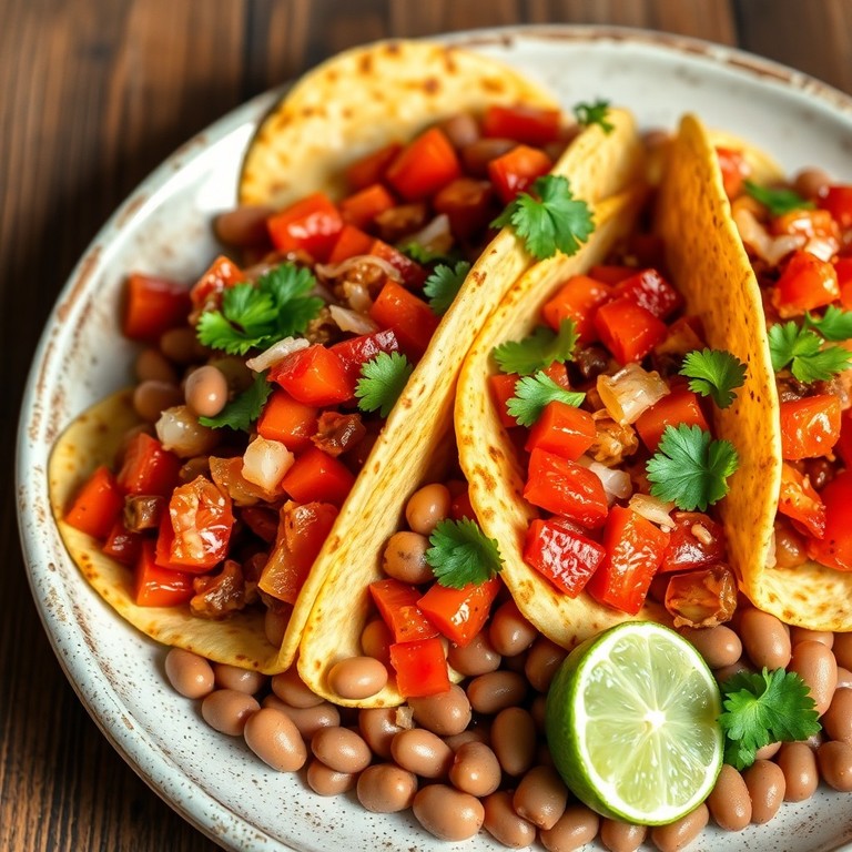 Deliciosos tacos rellenos de frijoles sancochados y una fresca mezcla de tomate y cebolla, listos en menos de 30 minutos, ideales para una cena rápida y nutritiva.