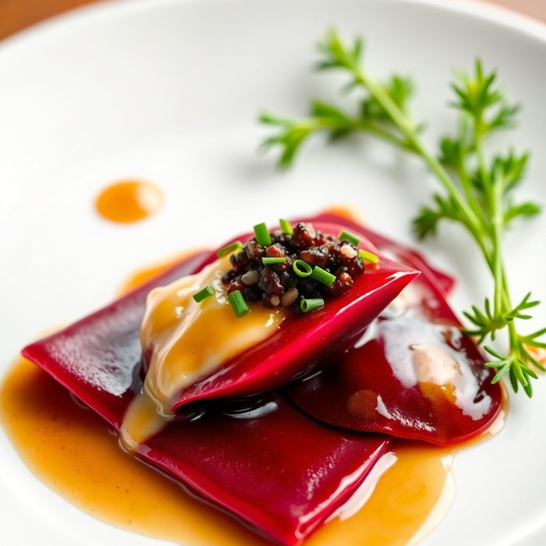 Ravioles de Betteraves avec Pâte de Betterave, Fromage Fin, Parmesan et Caviar Sevruga