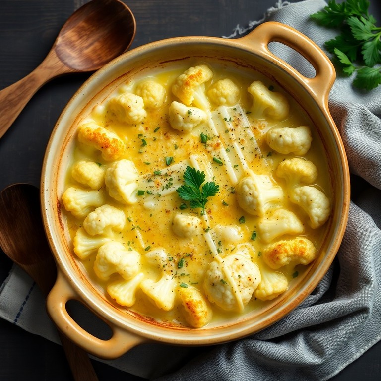 Un gratin crémeux de chou-fleur et fromage blanc, gratiné au parmesan et aux herbes de Provence, idéal pour un dîner familial savoureux et facile.
