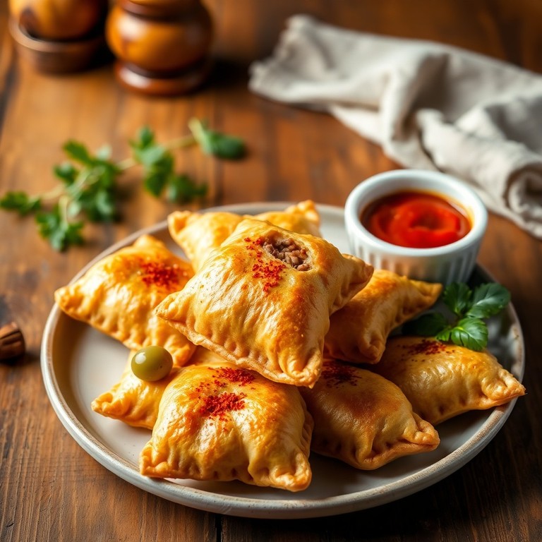 Crujientes pastelitos rellenos de carne molida sazonada con especias tradicionales y aceitunas. Una opción sabrosa para un aperitivo o una comida rápida. Se pueden freír u hornear según preferencia.
