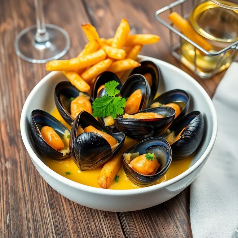 Une interprétation classique des moules marinières avec une touche de safran, servie avec des frites maison croustillantes. Coût matière : 4.85 € par personne, calculé pour la France en 2025.