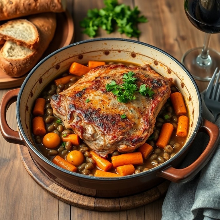 Rouelle de Porc Braisée aux Lentilles et Carottes à la Campagnarde
