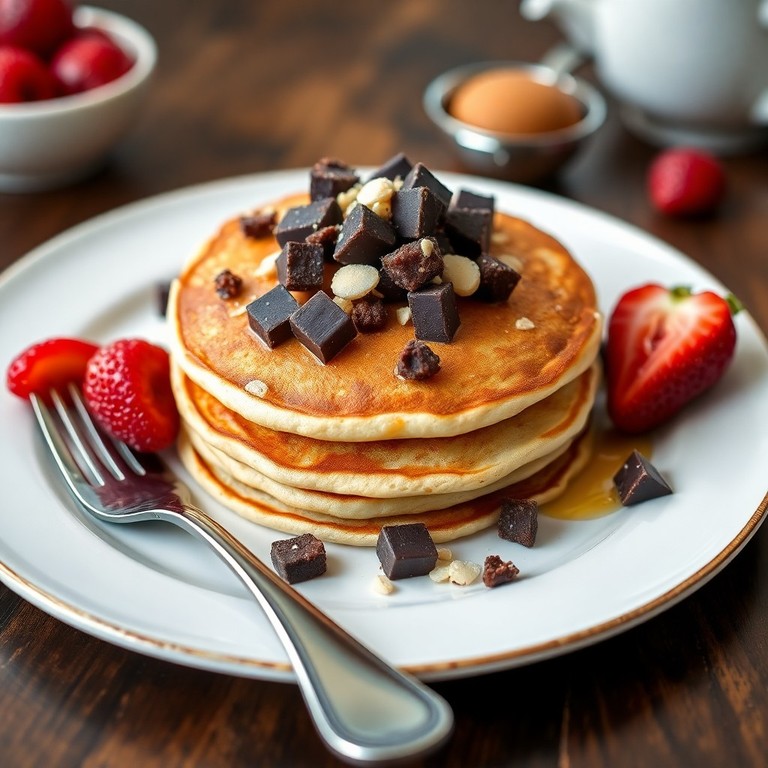 Ces pancakes épais et moelleux sont enrichis en protéines grâce à la poudre d'amande, aux œufs et à la whey neutre. Parfaits pour un petit-déjeuner ou une collation gourmande, ils combinent la douceur du yaourt nature et la gourmandise du chocolat noir pour un équilibre idéal entre plaisir et énergie.