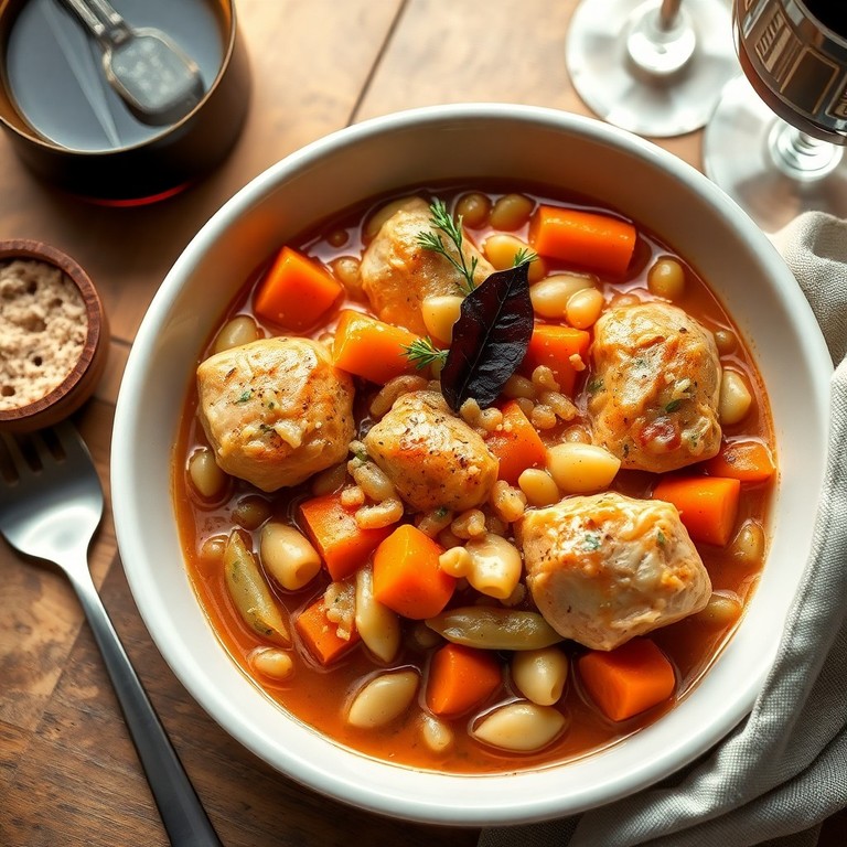 Un cassoulet traditionnel du sud-ouest de la France, combinant la douceur des flageolets, la richesse du poulet doré et la texture réconfortante des petites pâtes, mijoté dans un bouillon parfumé aux herbes.