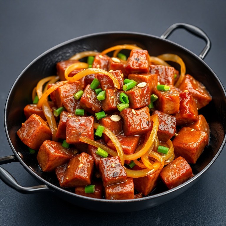 Un salteado rápido y auténtico de carne de res en cubos, cocinado en wok con salsa de soja, jengibre fresco y cebolla caramelizada. Este plato combina sabores orientales vibrantes y técnicas tradicionales para lograr una carne jugosa y aromática, perfecta para una comida llena de sabor.