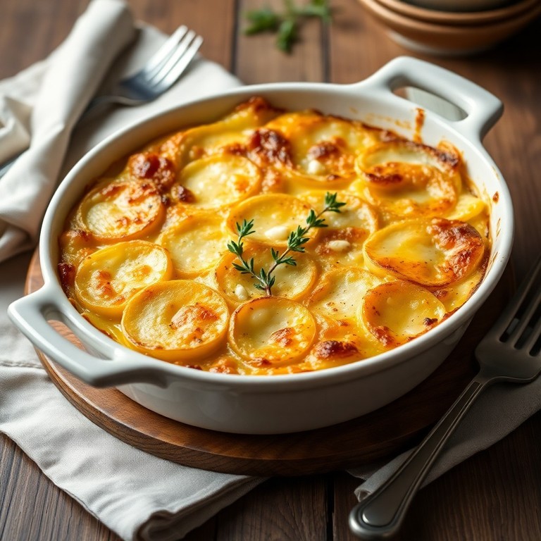 Un gratin crémeux et doré à base de pâtisson et de fromage de chèvre frais, idéal pour une entrée raffinée ou un plat principal léger. La douceur du pâtisson se marie parfaitement avec le caractère délicat du fromage de chèvre, relevé par une pointe d'ail et de noix de muscade.