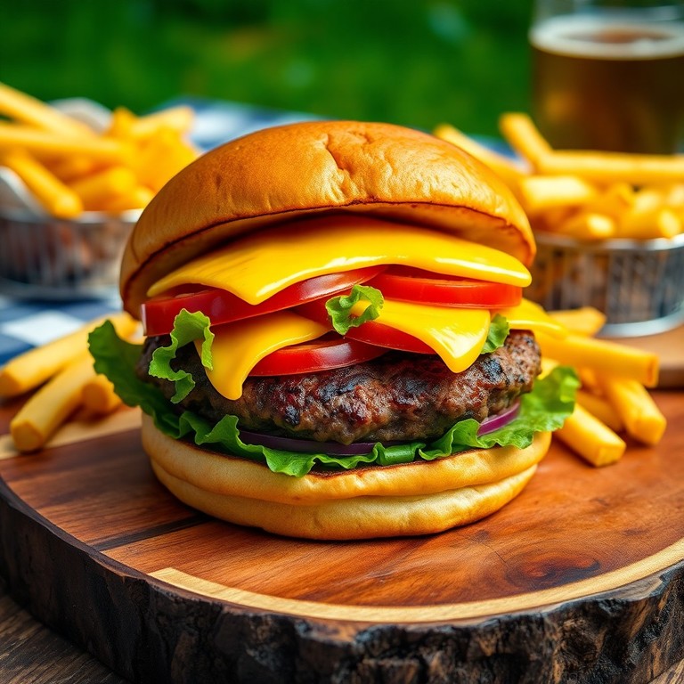 Una receta sencilla y tradicional para preparar una hamburguesa clásica a la parrilla con ingredientes básicos que resaltan el sabor natural de la carne.