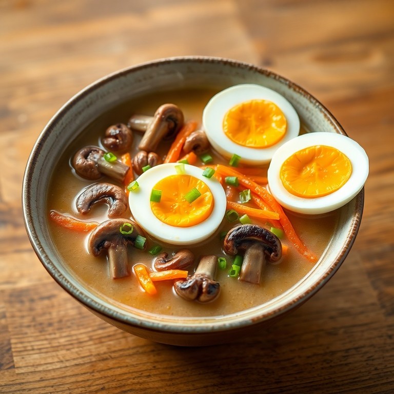 Une soupe réconfortante fusionnant la douceur du beurre de cacahuète avec la richesse du bouillon de poulet, agrémentée de champignons, carottes et œufs mollets pour une touche japonaise authentique. Cette recette combine des saveurs asiatiques classiques avec une texture onctueuse et des ingrédients frais pour un plat nourrissant et savoureux.