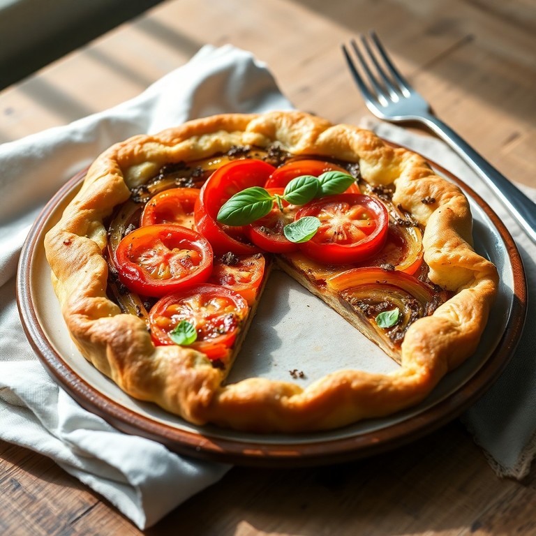 Une tarte classique du sud de la France avec une pâte croustillante, des tomates juteuses et des oignons caramélisés, idéale pour un repas léger ou une entrée sophistiquée. Cette recette met en valeur la douceur des oignons lentement dorés et l'acidité délicate des tomates fraîches, le tout relevé par des herbes de Provence et une touche de fromage pour un équilibre parfait.