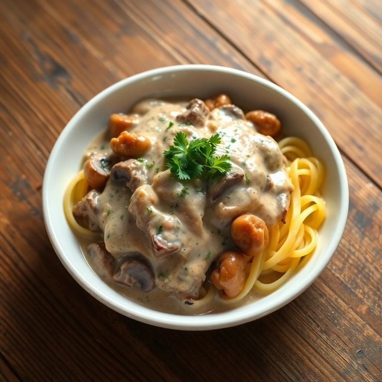 Un classique russe avec des morceaux de bœuf tendres sautés aux champignons, nappés d'une sauce crémeuse à base de crème aigre, idéal pour un repas réconfortant en 30 minutes.