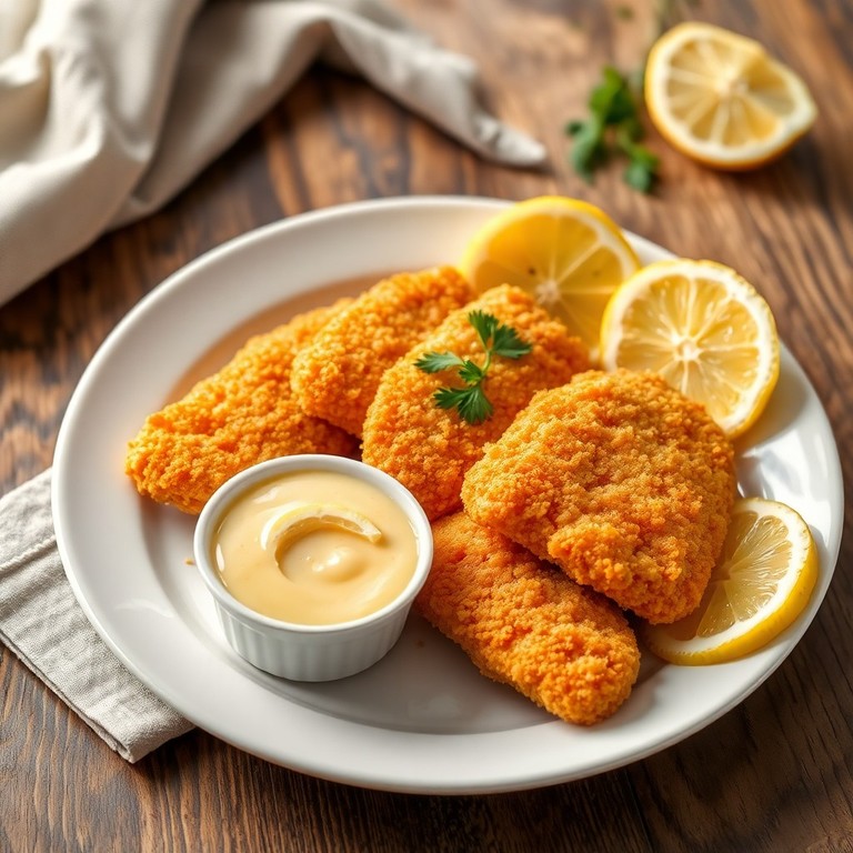 Классический рецепт минтая в хрустящей панировке с освежающим лимонным соусом. Быстрое и простое блюдо, идеально подходящее для семейного ужина или праздничного стола. Хрустящая золотистая корочка и нежное филе рыбы создают прекрасное сочетание с ярким цитрусовым акцентом соуса.