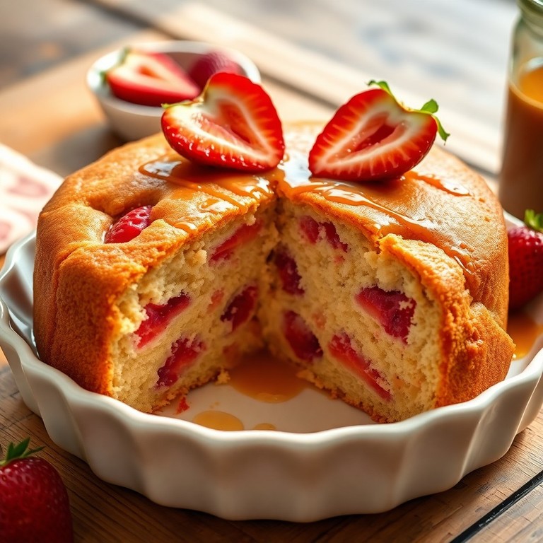 Un gâteau moelleux et léger, préparé avec de la farine bio, un œuf, un yaourt nature, des fraises surgelées et enrichi de whey à la saveur caramel beurre salé. Ce dessert allie douceur fruitée et notes gourmandes de caramel, parfait pour une pause sucrée équilibrée.
