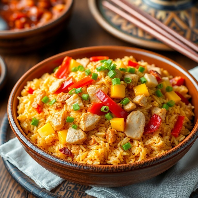 El arroz chaufa es una deliciosa fusión peruano-china que combina arroz salteado con pollo, huevo y salsa de soja, logrando un plato rápido, sabroso y lleno de sabor umami. Perfecto para una comida reconfortante y fácil de preparar en casa, este clásico destaca por su textura suelta y su aroma característico.