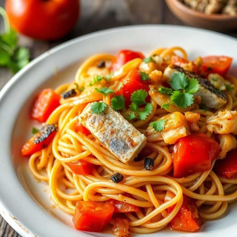 Tallarines Salteados con Cebolla, Cilantro y Sardinas