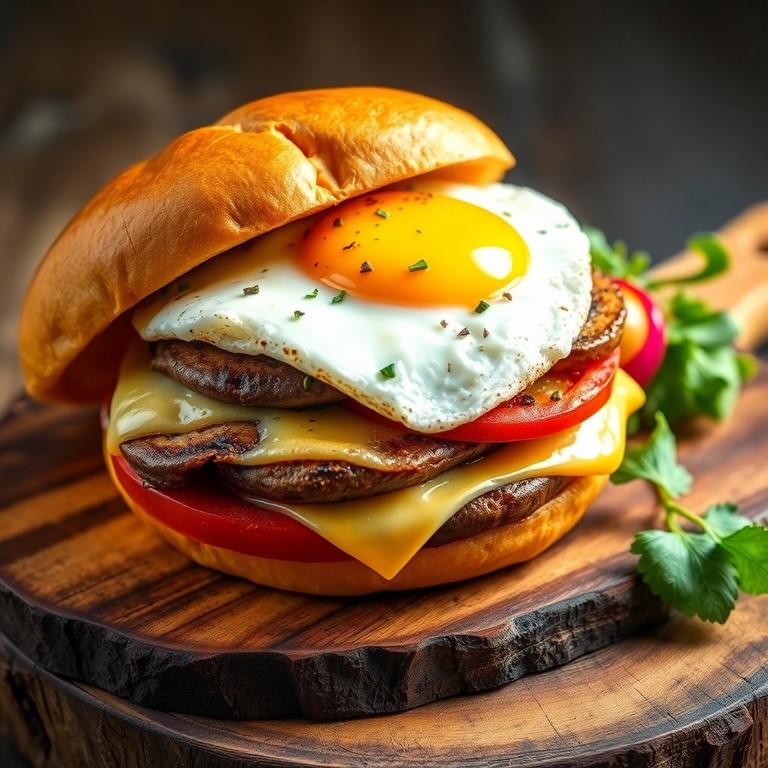 Un burger gourmand combinant la douceur des champignons de Paris grillés, la fraîcheur de la tomate, et un mélange de fromages fondus, le tout servi dans un pain hamburger moelleux. Idéal pour un déjeuner rapide et savoureux, ce burger offre une explosion de saveurs et de textures, avec une touche de beurre pour sublimer les champignons et un œuf au plat pour plus de gourmandise.