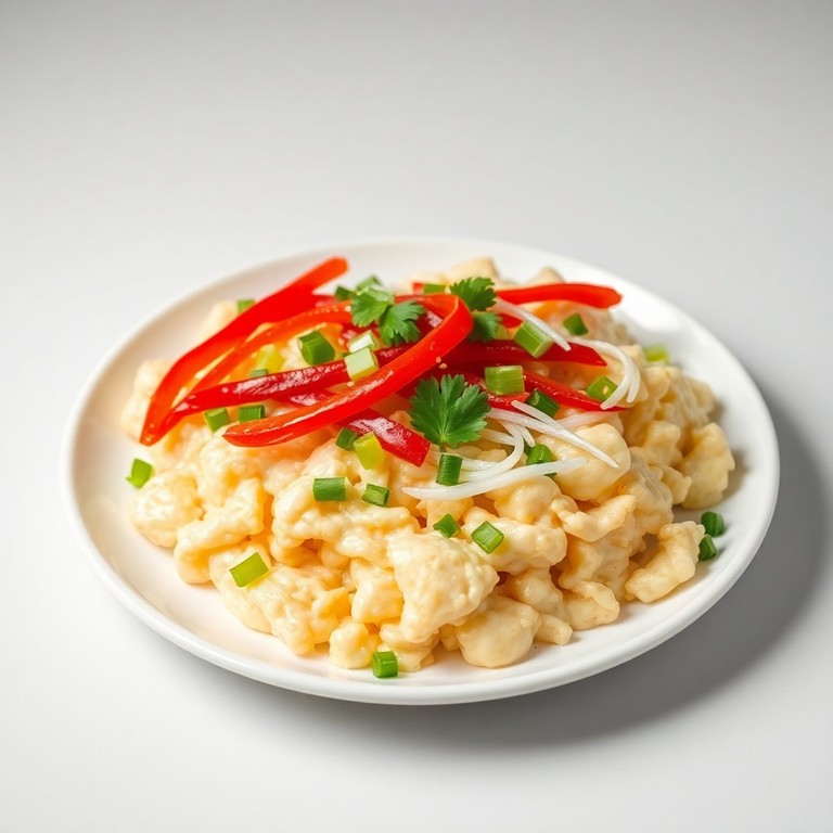 Un revuelto esponjoso y sabroso que combina huevos frescos con verduras asiáticas como pimientos, cebolletas y soja, aportando un toque oriental y fresco. Esta receta es rápida y fácil de preparar, ideal para un desayuno o cena ligera con sabores intensos y texturas crujientes.