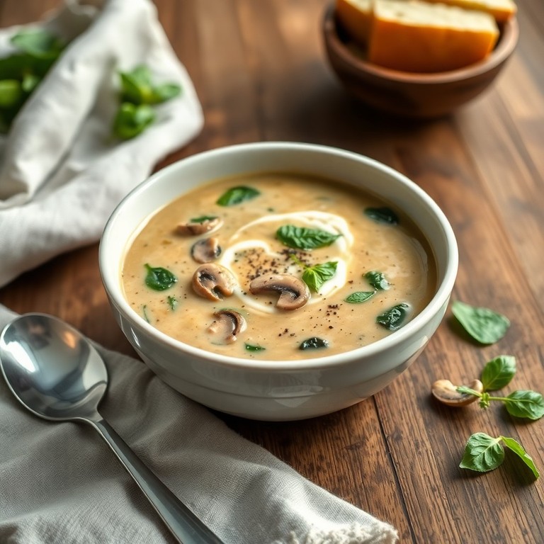 Una sopa espesa y nutritiva que combina champiñones frescos y espinacas tiernas en un caldo de pollo casero, perfecta para una comida de cuchara baja en carbohidratos sin legumbres ni patatas. Esta crema es ideal para quienes buscan una opción reconfortante, ligera y saludable, llena de sabor y textura cremosa sin necesidad de ingredientes ricos en carbohidratos.