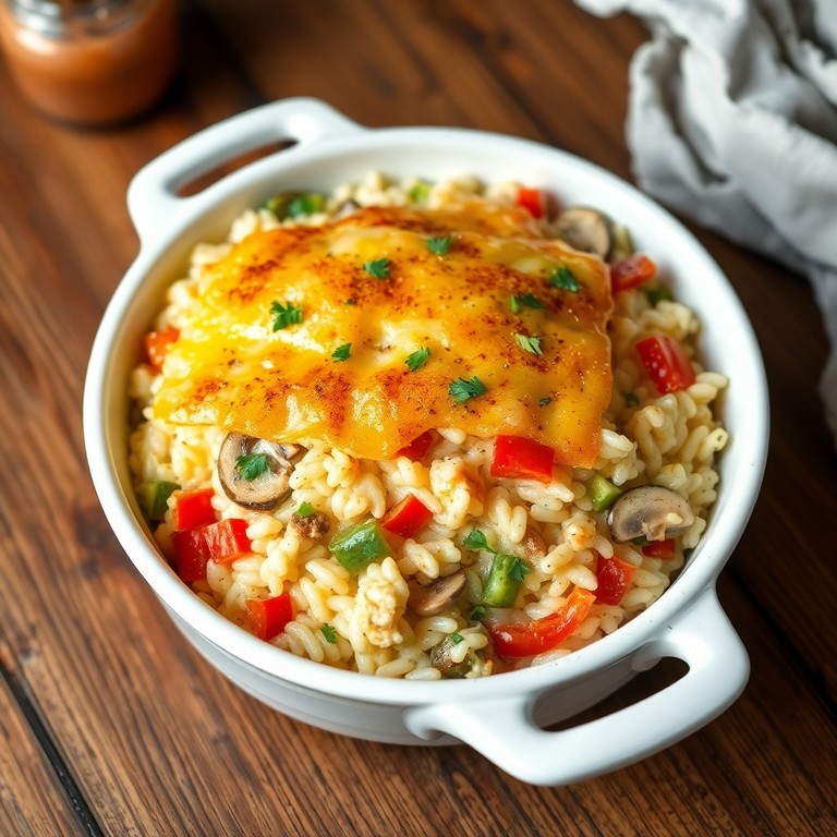 Un plat réconfortant et savoureux associant un riz tendre et crémeux à un mélange coloré de légumes frais, le tout couronné d'une généreuse couche de fromage fondu gratiné. Parfait pour un dîner convivial et chaleureux, ce plat allie douceur, textures fondantes et saveurs délicates.