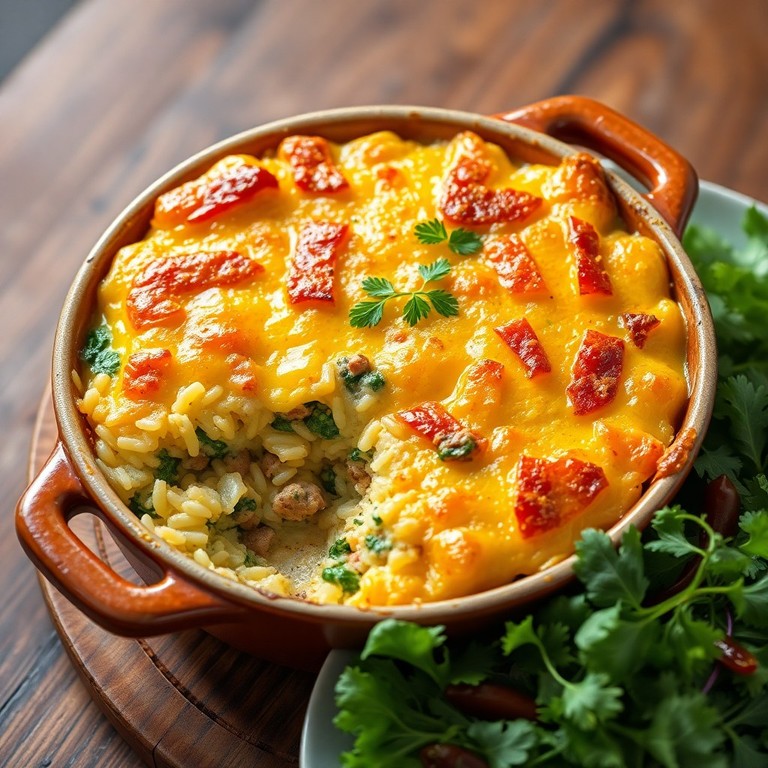 Ce gratin familial marie harmonieusement du riz moelleux, des épinards frais et de la viande hachée savoureuse, le tout nappé d'une sauce crémeuse et gratiné avec du fromage doré. Parfait pour un dîner convivial, ce plat complet est à la fois réconfortant et facile à préparer. Servez-le avec une salade verte pour un repas équilibré.
