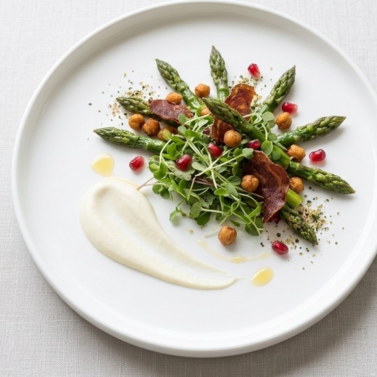 Asperges Vertes, Crème de Yaourt Citronnée, Chips de Morteau & Gomasio