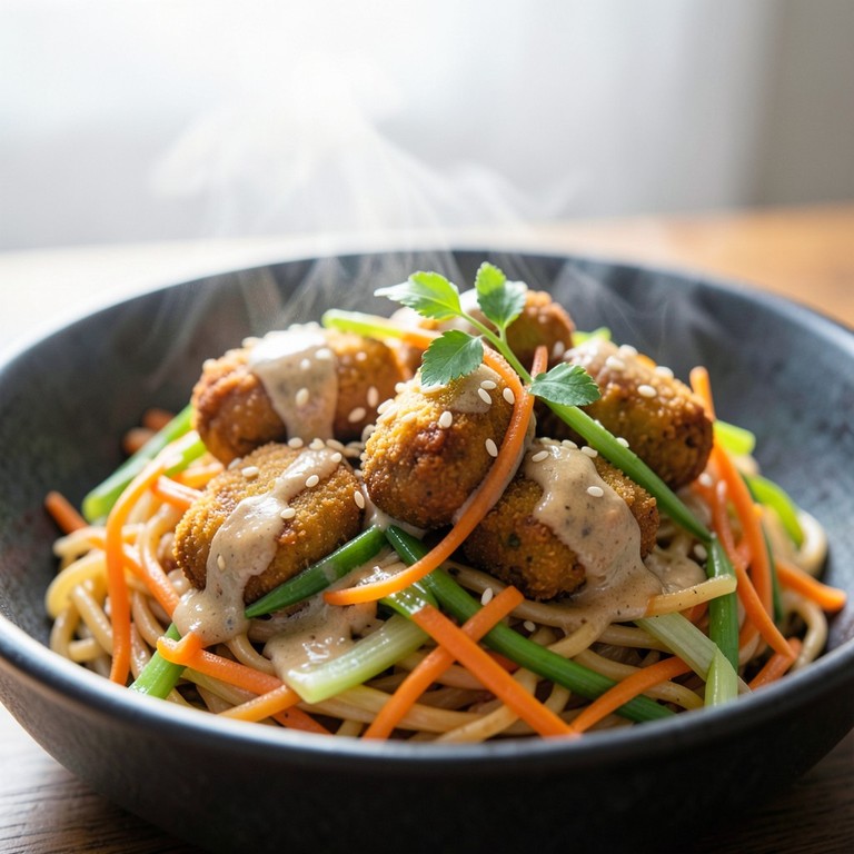 Bol de Nouilles Asiatiques Rapide aux Falafels et Sauce Cacahuète