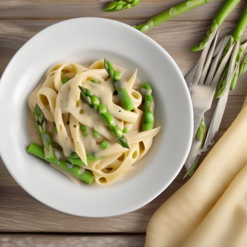 Eine köstliche Pasta mit einer cremigen Sahne-Soße, frischem Spargel und süßen Erbsen.