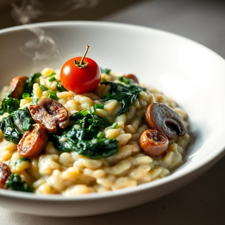 - Risotto Cremoso ai Funghi e Spinaci con un Tocco di Aglio