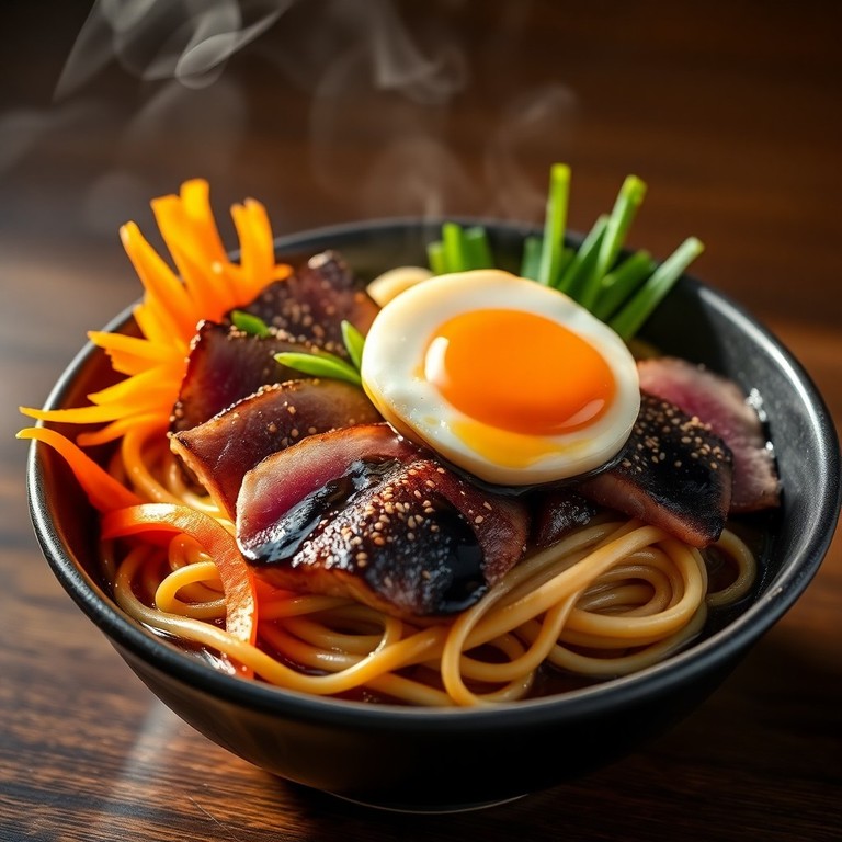 - Ramen Giapponese "Asciutto" con Filetto di Tonno Scottato e Uovo Morbido
