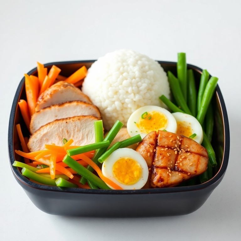 Bento di Riso e Pollo alla Griglia con Verdure Croccanti