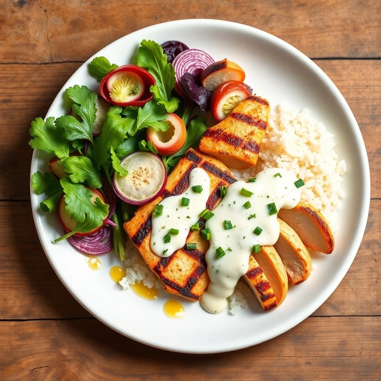 Pollo alla piastra con salsa allo yogurt e insalata mista