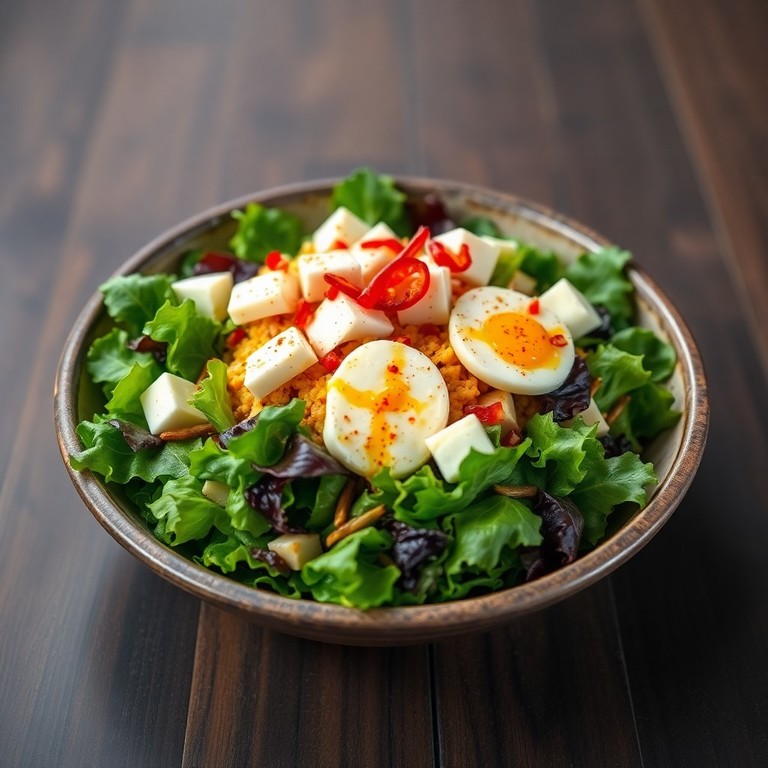 Insalata Ricca con Tofu Strapazzato e Vinaigrette al Peperoncino