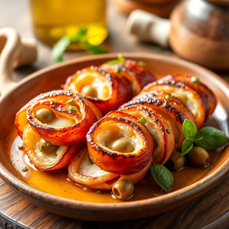 Involtini di Prosciutto e Provola alla Griglia con Olive Marinate