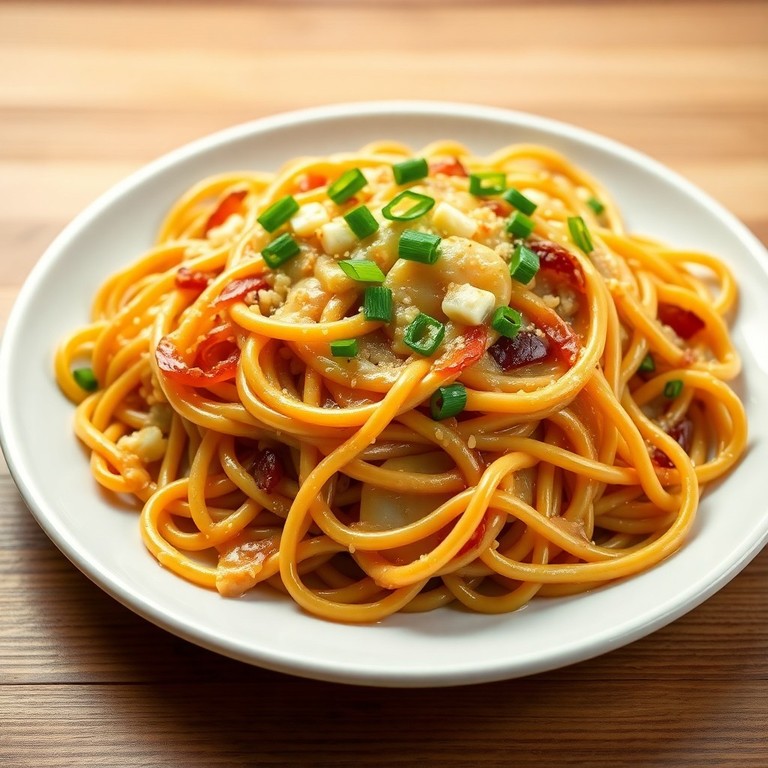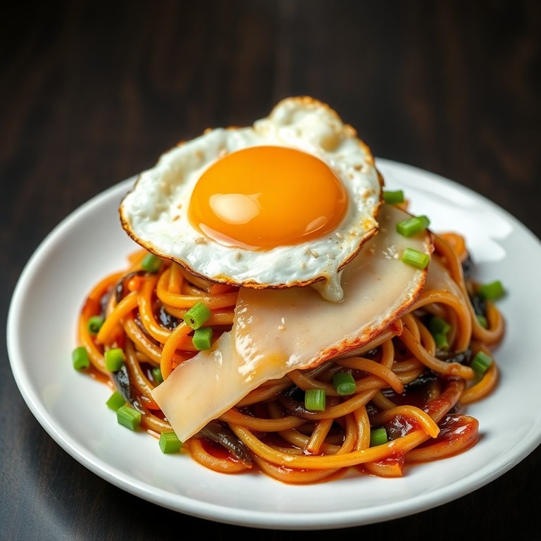 Fideos Coreanos con Queso Gouda y Huevo Frito