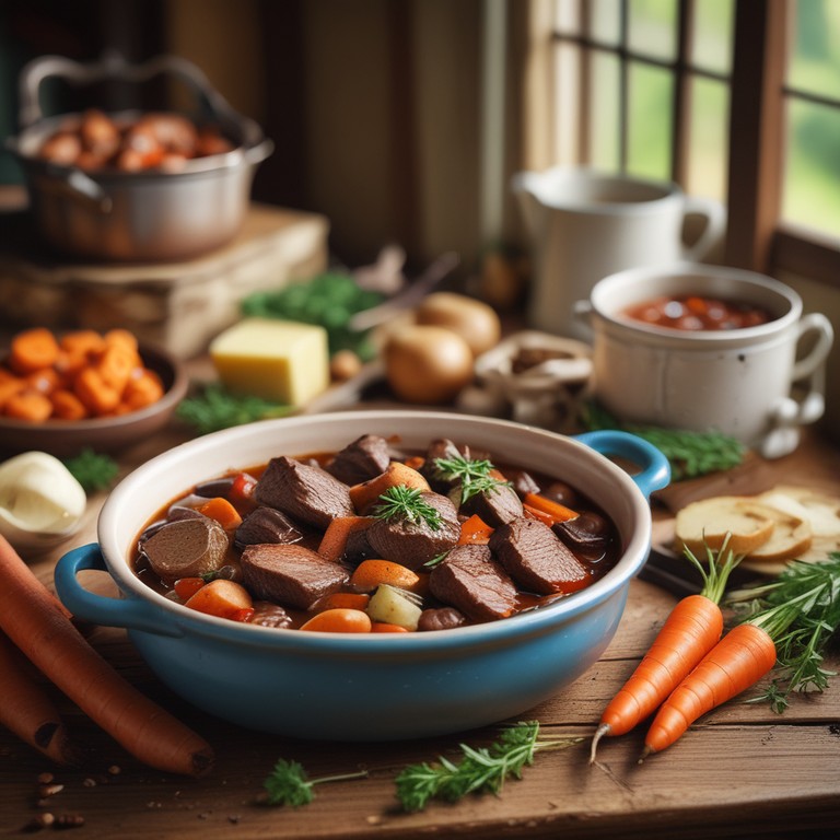 Boeuf Bourguignon aux Carottes et Pommes de Terre avec Crème Fraîche
