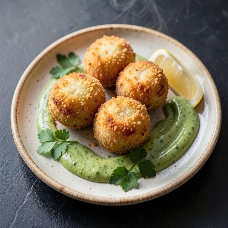 - Bolinhos de Atum e Ovos com Crosta de Pão e Molho de Taioba