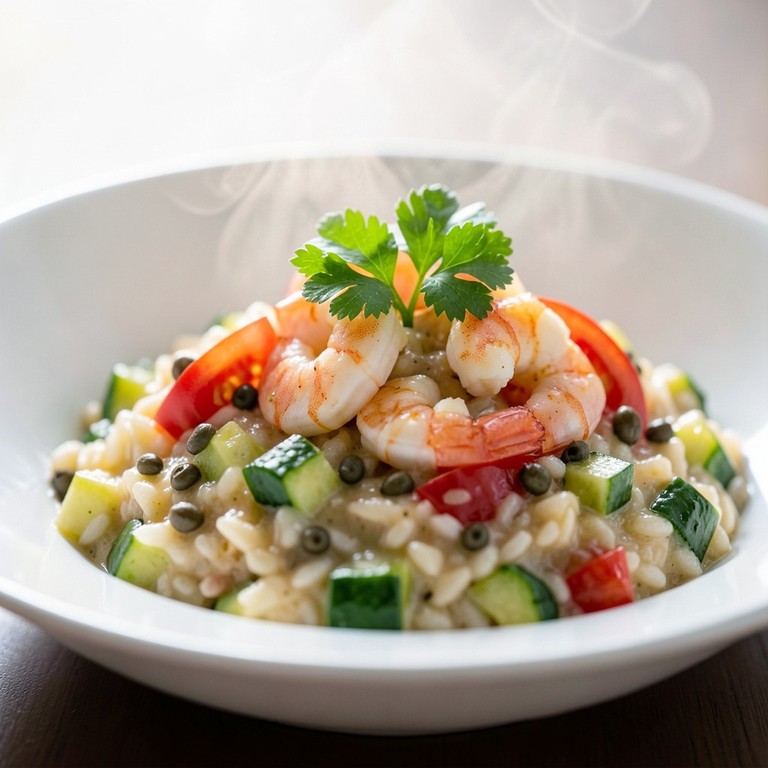 - Risoto Cremoso de Camarões com Abobrinha e Alcaparras