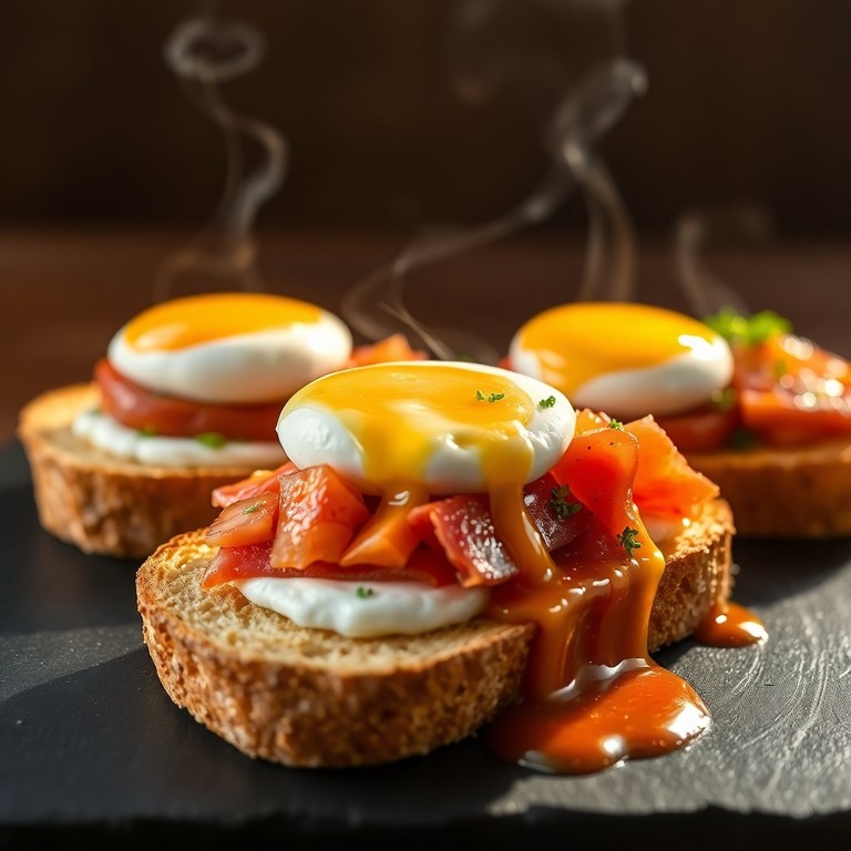 Bruschette Arrosto con Uova in Camicia e Trio Salato