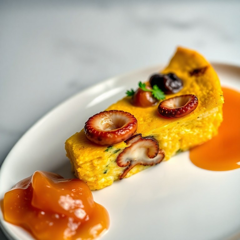 Frittata di Uova di Struzzo con Polpo Grigliato e Marmellata d'Arance